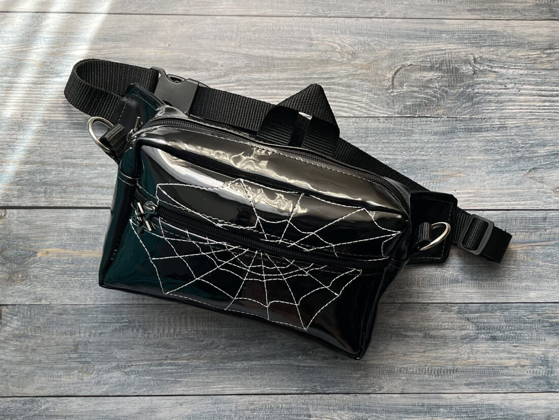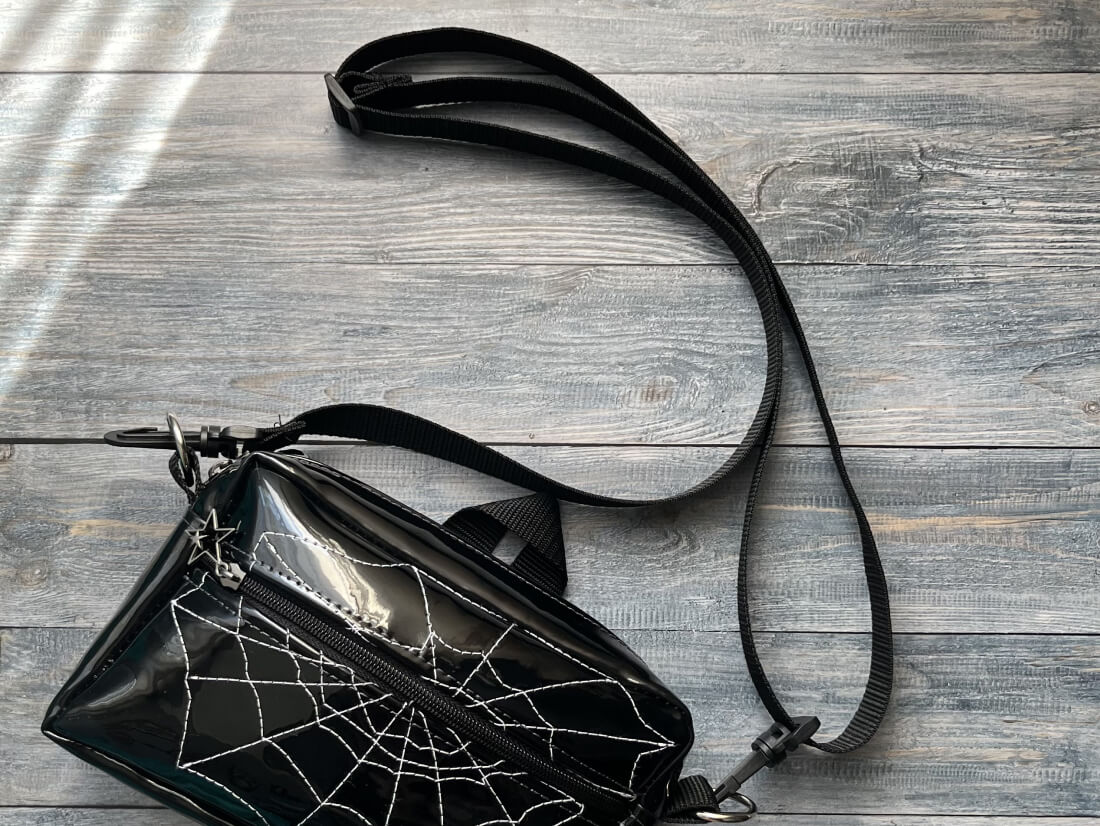 Minimalista y llamativo al mismo tiempo, este bolso de charol negro brillante con diseño de telaraña combina estilo gótico y urbano en un accesorio práctico y único. Ideal para quienes disfrutan marcar tendencia con piezas originales.