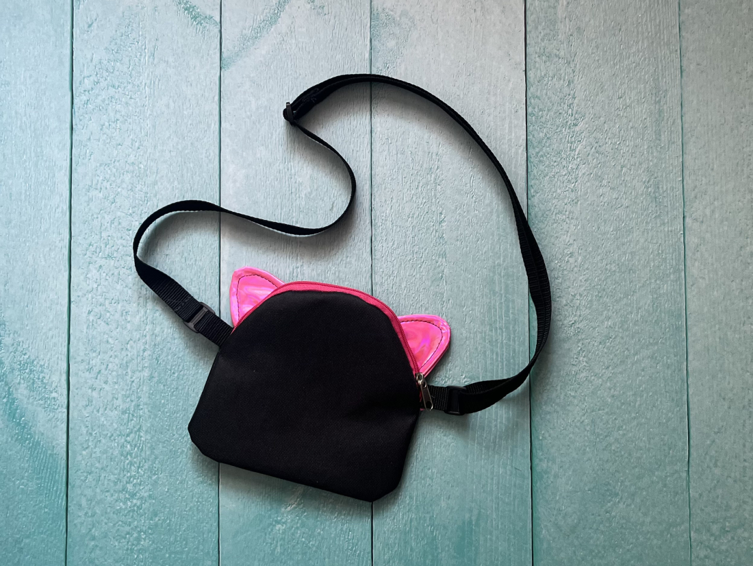 Un bolso que maulla estilo. Confeccionado en lona y charol negro brillante y con orejitas que enamoran, este crossbody es el toque perfecto para quienes aman los accesorios distintos.