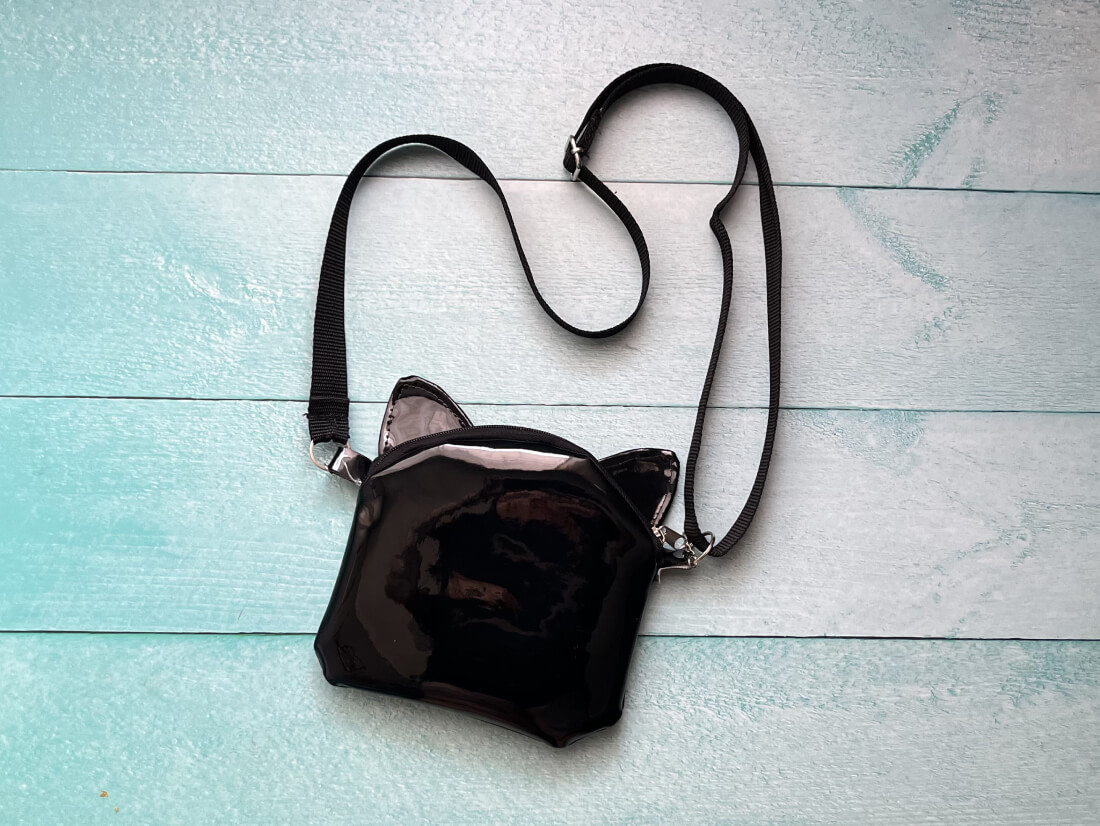 Un bolso que maulla estilo. Confeccionado en charol negro brillante y con orejitas que enamoran, este crossbody es el toque perfecto para quienes aman los accesorios distintos.
